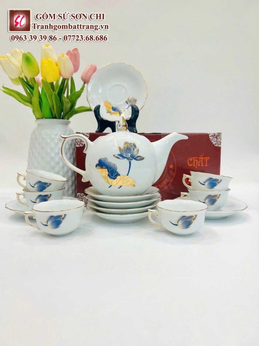 Bộ ấm chén in tranh họa tiết dát vàng - mẫu 28