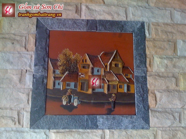 Tranh gốm có thể gắn vào khung và treo trang trí nội thất hoặc có thể trang trí tranh gốm ghép trực triếp lên tường thành một bức tranh trang trí ngoại thất.