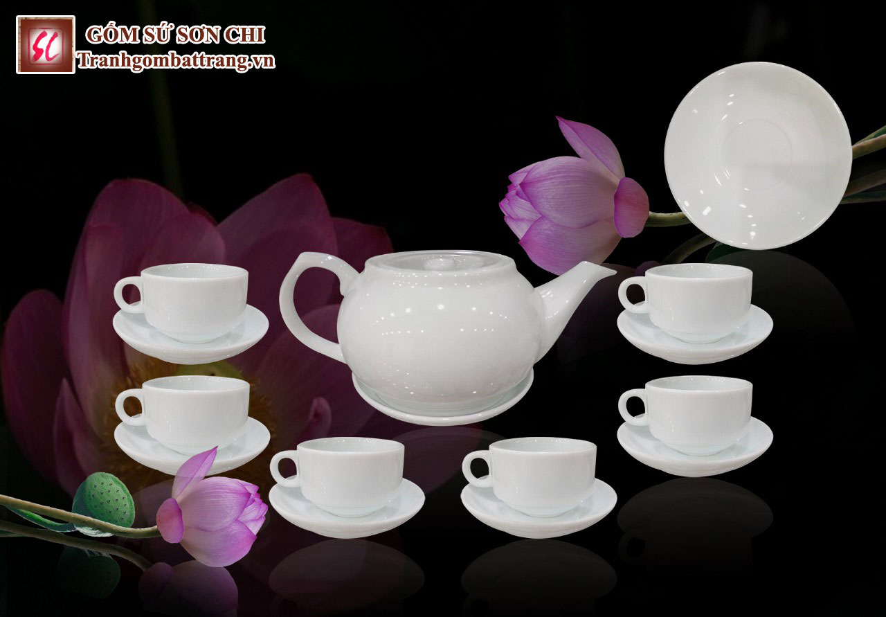 Tên sản phẩm : Bộ ấm chén Bát Tràng màu trắng sứ - mẫu 02