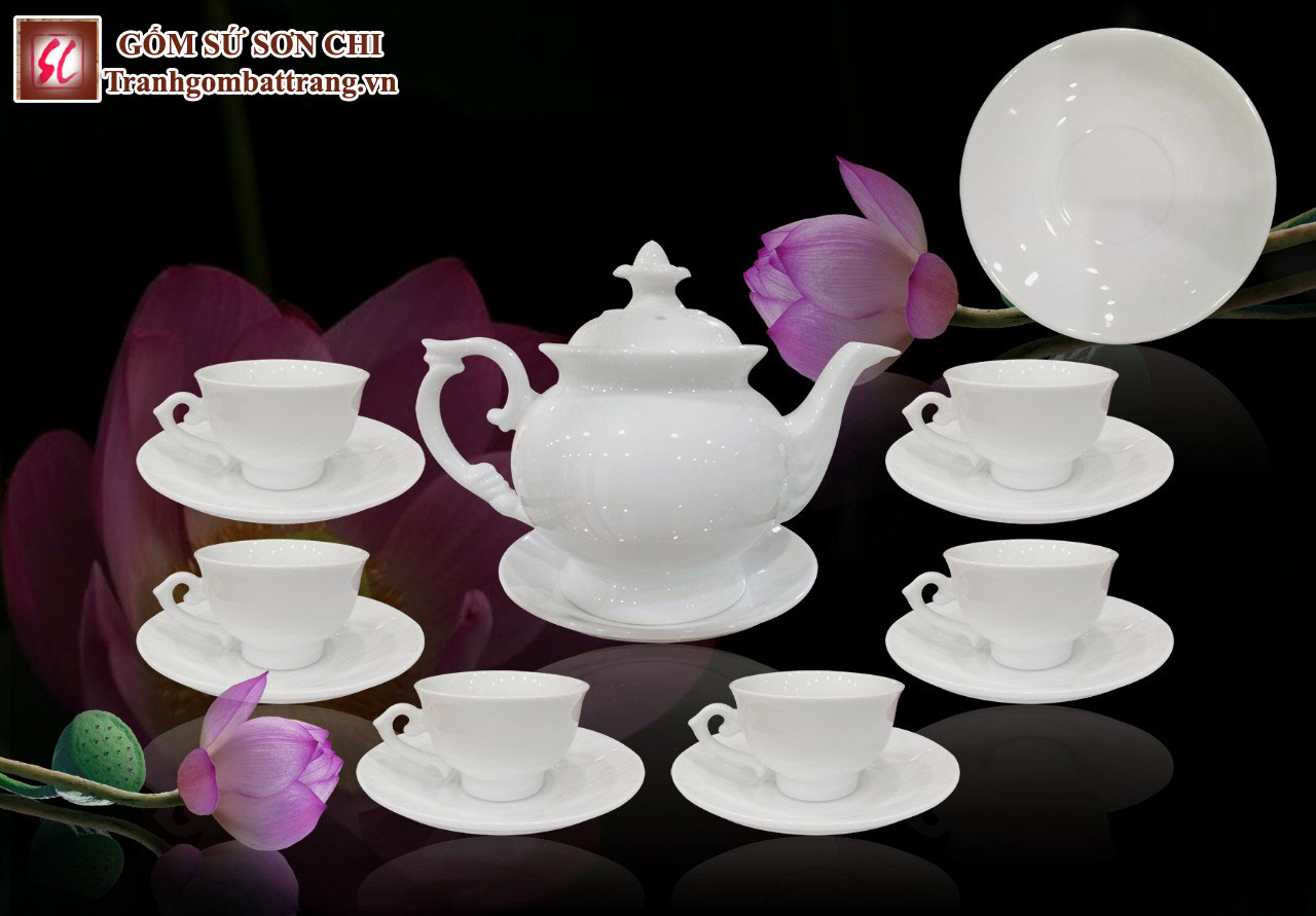 Bộ ấm chén Bát Tràng màu trắng sứ - mẫu 06