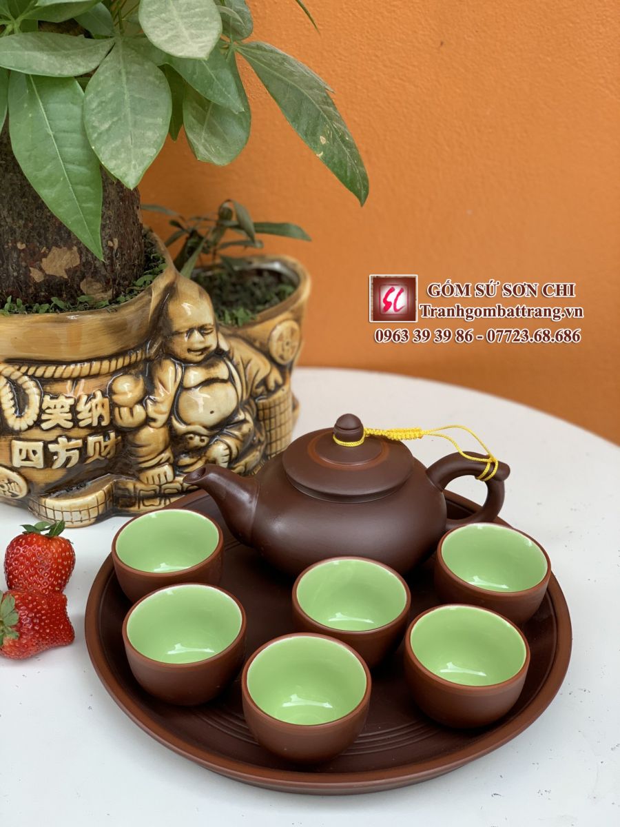Bộ ấm chén Bát Tràng màu nâu cổ - mẫu 59