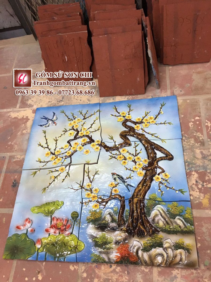 Tranh tường chất liệu gốm khắc phục được nhược điểm kích thước nhỏ, hạn chế. Nay, với thế loại tranh ghép miếng, tranh tường gốm Bát Tràng có thể sản xuất được với đủ mọi kích thước. Chất liệu gốm bền đẹp về màu sắc, hiện đại và hài hòa với cảnh quan. Tôn vẻ đẹp ngôi nhà của bạn.